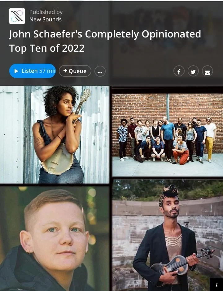 Check out John Schaefer's Completely Opinionated Top Ten of 2022 from New Sounds, which features two Unmanageable-supported projects: Leyla McCalla’s Breaking the Thermometer and the composer collective Rachel Grimes, Angélica Negrón, Shara Nova, Caroline Shaw, Sarah Kirkland Snider along with A Far Cry in a stunning recording of Carolyn Forche’s The Blue Hour.